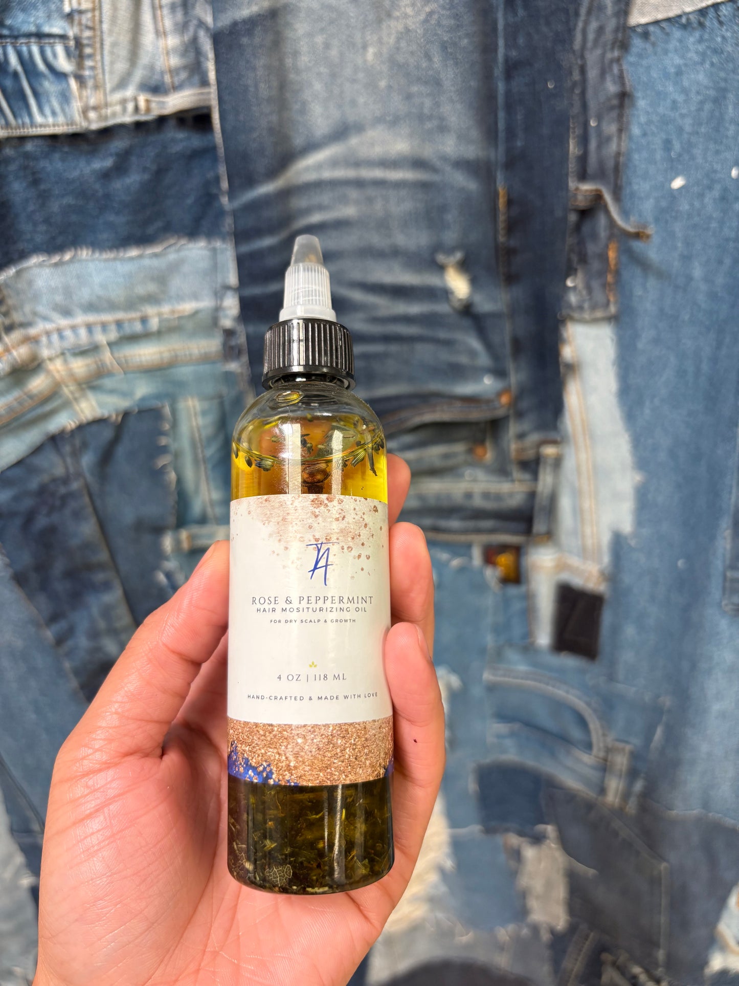 Rose & peppermint hair moisturizing oil for dry scalp & growth! Hand crafted & made with love!